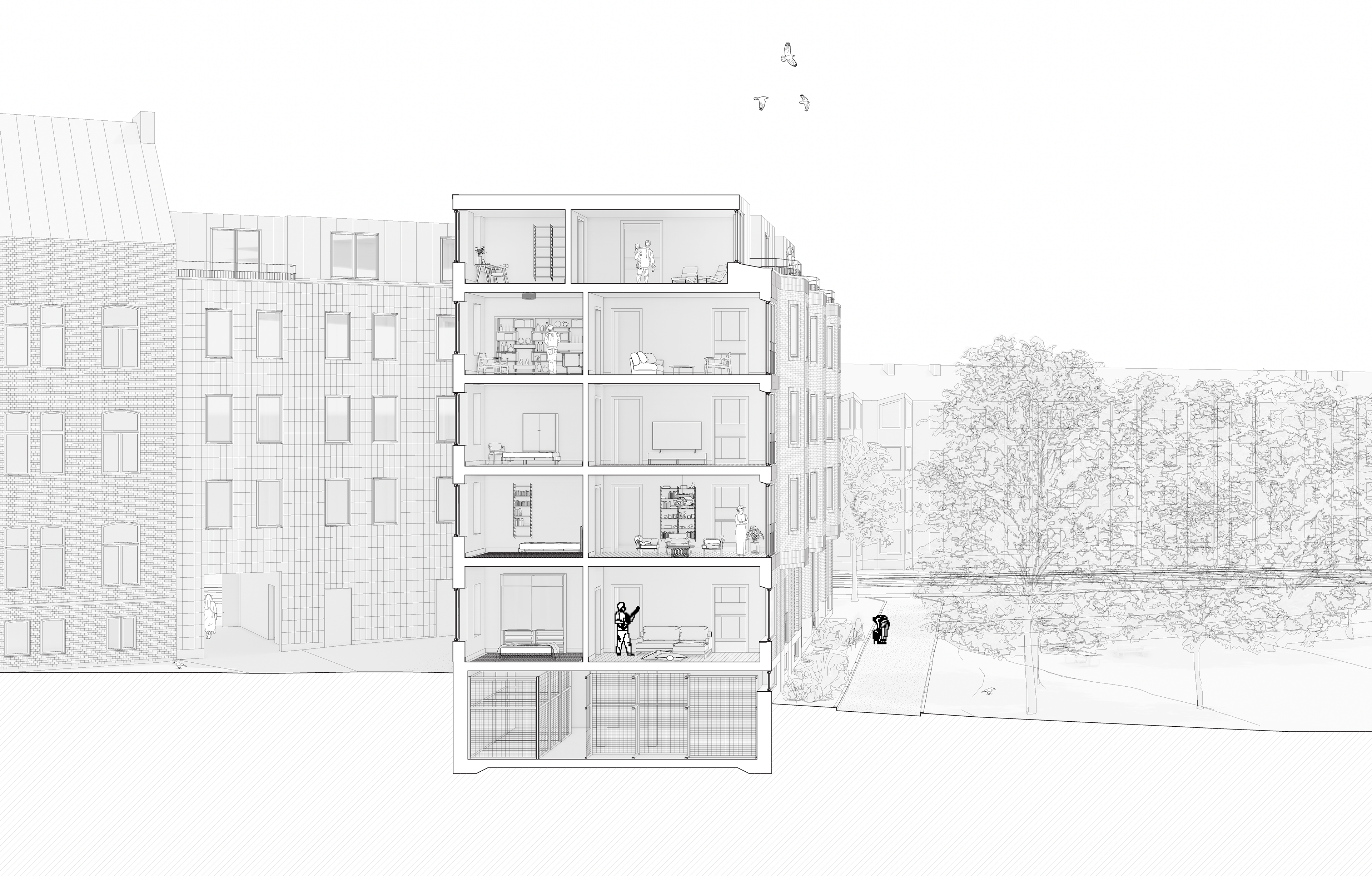 Urbant infill-projekt, Kråkelyckan i Lund i kursen Boendets rum AAHN40 arkitektutbildning LTH (årskurs 5)