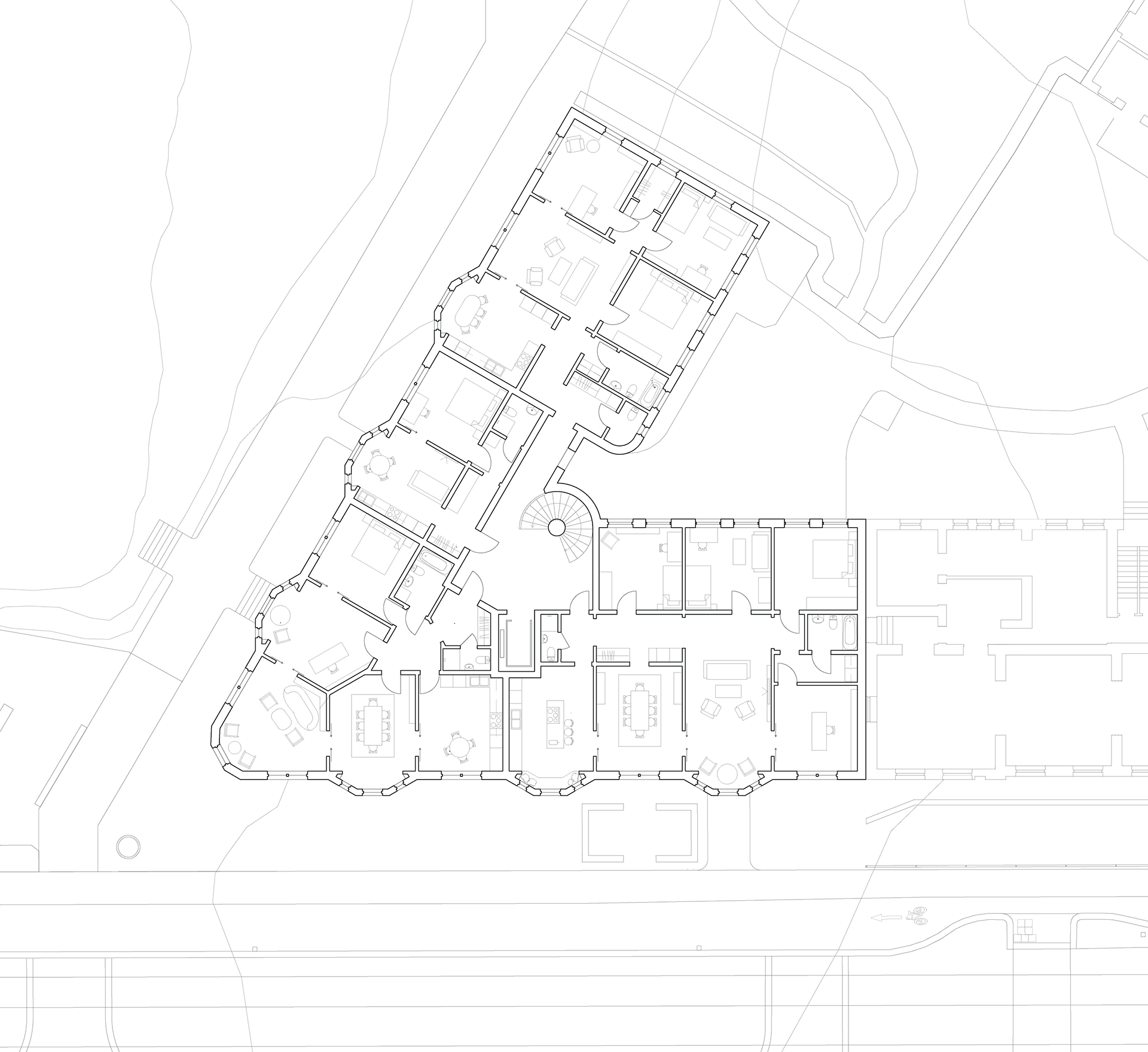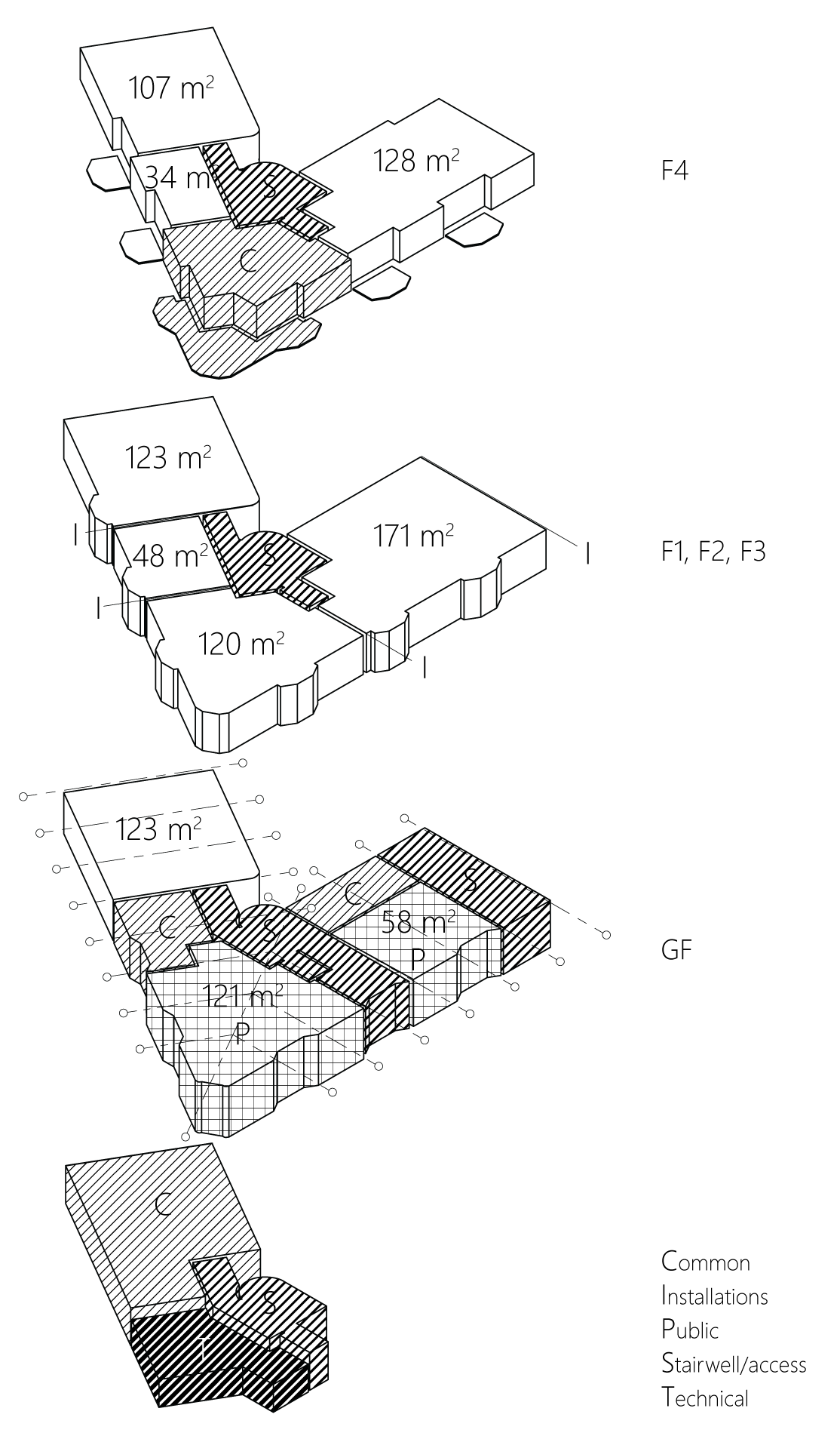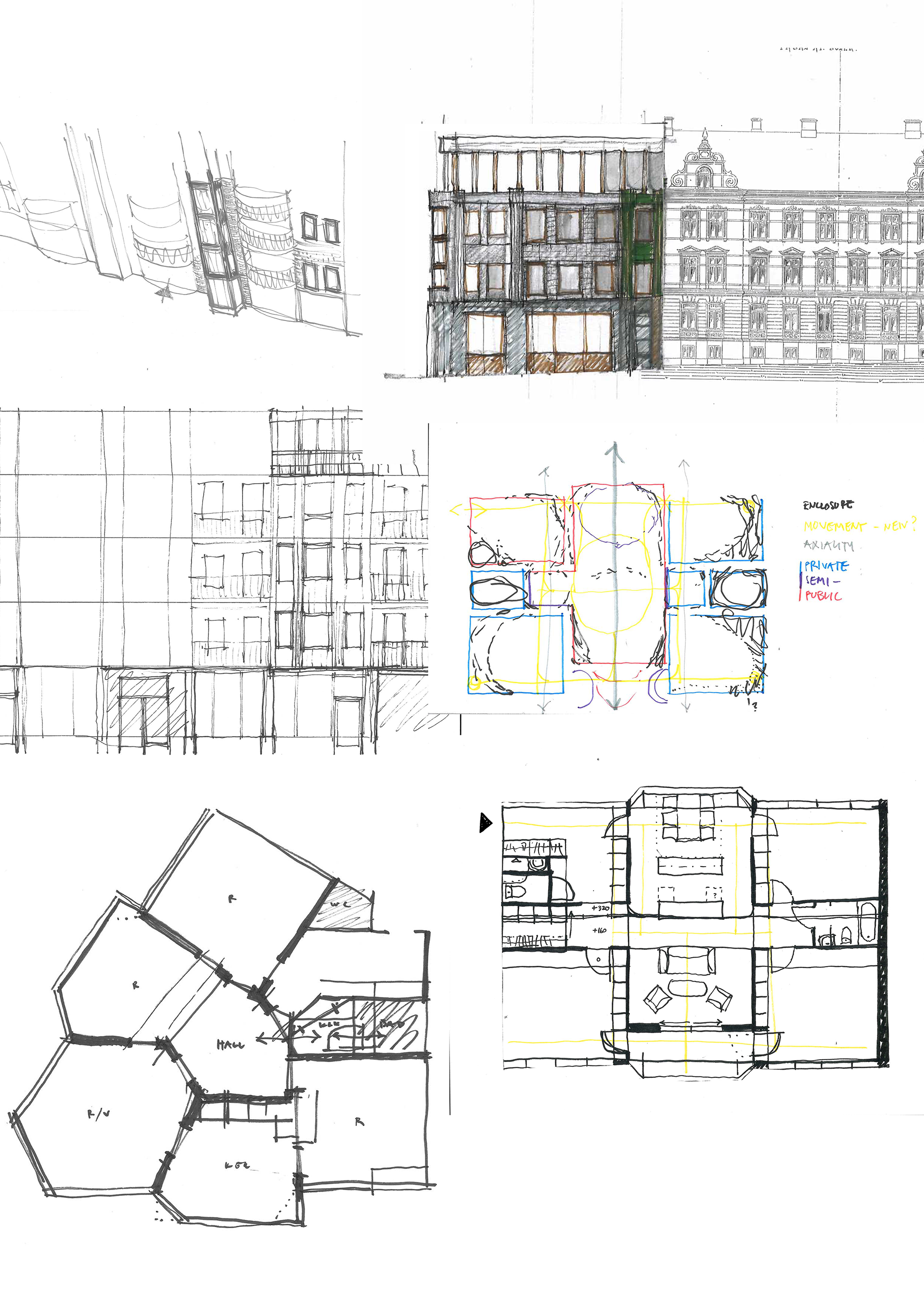 De två hörnhusen från sent 1800-tal inspirerade till organisationen av byggnaden. Generella rumsformer av ett ganska klassiskt snitt var huvudkoncept för bostäderna efter exempel av bland andra Sven Thiberg och Brunnberg & Forsheds Stumholmen. Ytorna skulle enligt projektuppgiften vara stora eftersom utbudet av detta är litet i Lunds stadskärna. Målningar av Vilhelm Hammershøi och tegelbostadshus i Lunds stadskärna gav förebilder i atmosfär.